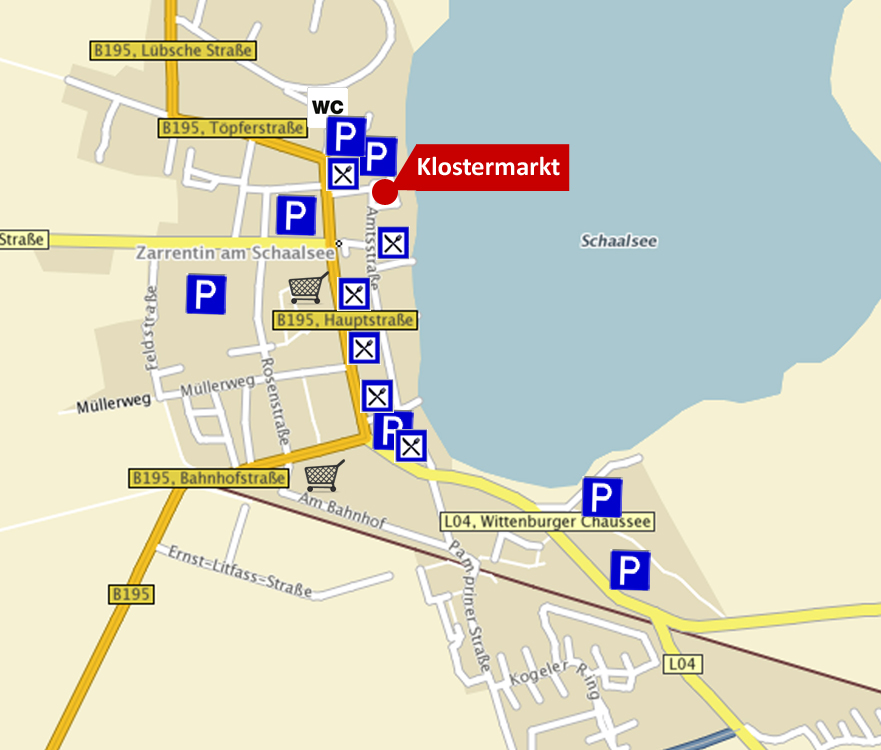 Die Stadt Zarrentin am Schaalsee liegt zwischen Hamburg und Schwerin in dem Bundesland Mecklenburg-Vorpommern. Das Kloster Zarrentin befindet am Kirchplatz 8, 19246 Zarrentin am Schaalsee. Den Link zu Google Maps finden Aussteller hier. Aussteller können die gekennzeichneten Parkplätze nutzen. Der Parkplatz an der Kirche ist kostenpflichtig und den Besuchern vorbehalten. Es gibt weitere (meist) kostenpflichtige Parkplätze in der Stadt (siehe Karte). Hier ist teilweise die Parkster-App nutzbar.